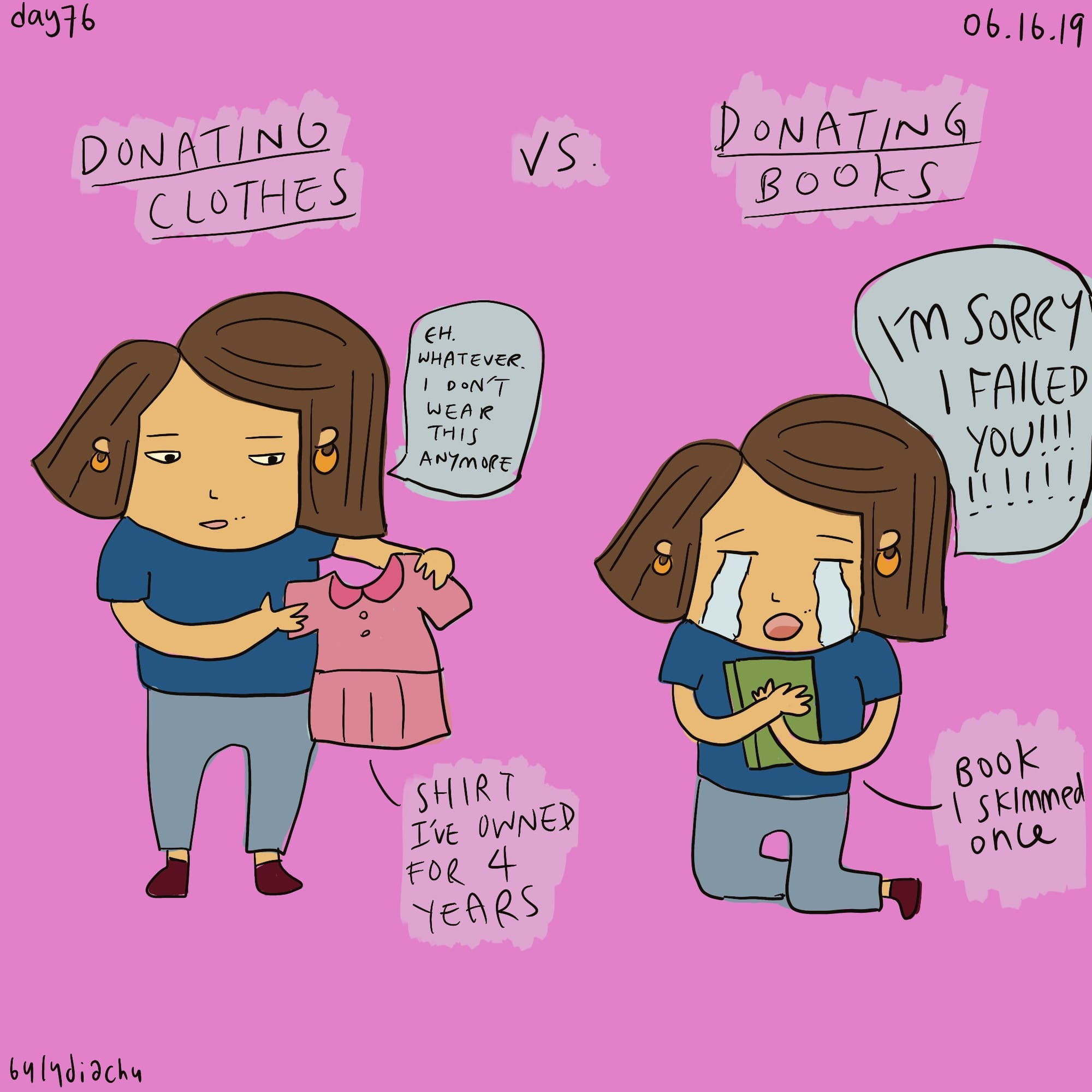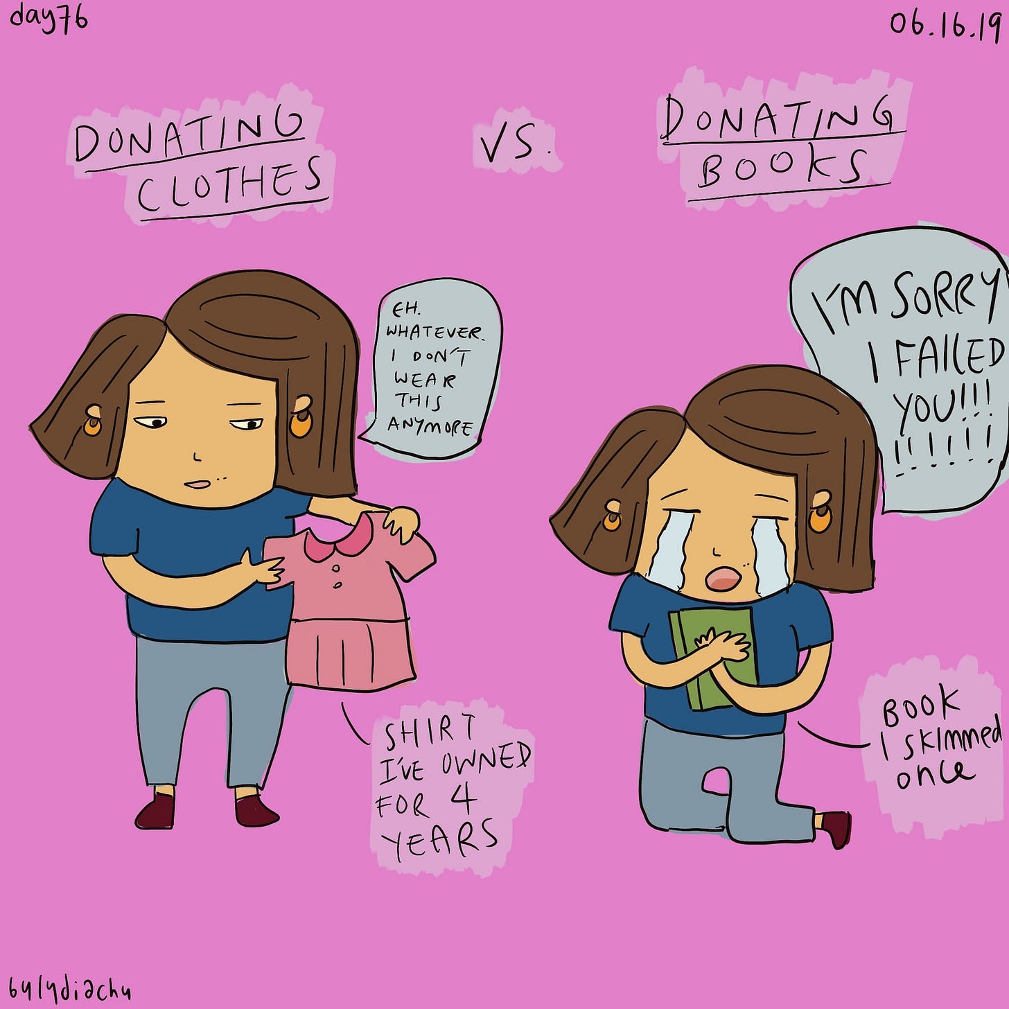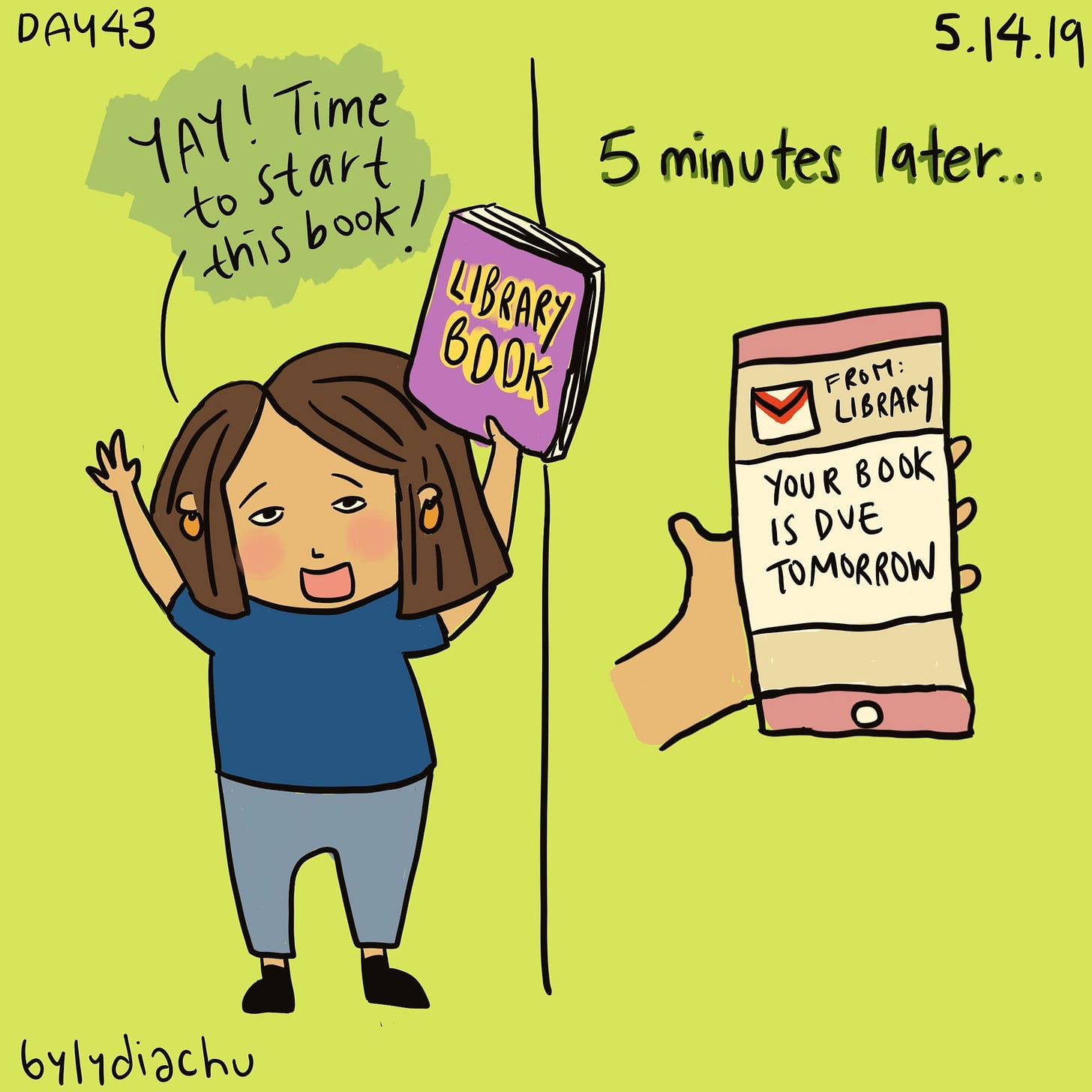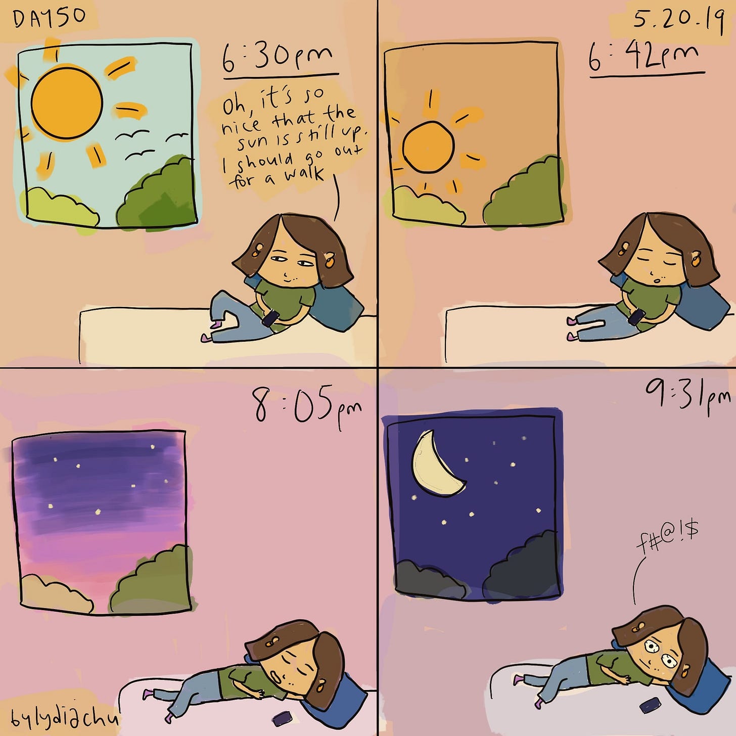 I've been drawing, painting, and making art on and off throughout my childhood and teenage years. As a kid, art was a constant in my life. Either I went to an art class occasionally or I'd doodle at home for fun. During my teenage years, I had taken a few art classes outside of school but otherwise in school, I took art electives every year and that was how I kept making art. Once I got to college, I stopped drawing or doing anything creative for a long while (with the exception of photography). It wasn't until I was working on my senior thesis, which was a process that I did not enjoy very much, that I started to follow all these comic artists and illustrators on Instagram. Scrolling art instead of the highlights of my peers' life made me feel much more at peace when I was on social media. Over time, the more artists I followed, the more I related with the content, the more inspired I was to start drawing my own life out. But trying to draw my life out after never thinking about my life in this way (storytelling through comics), while in the midst of the busy-ness of college senior life, I only managed to draw out my life a few times. I kept it to myself. I remember doing one doodle about studying that I really loved and made me laugh. It was a nice comic relief for me amidst all this stress at school.